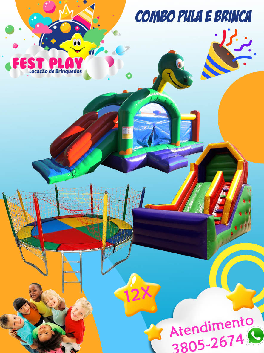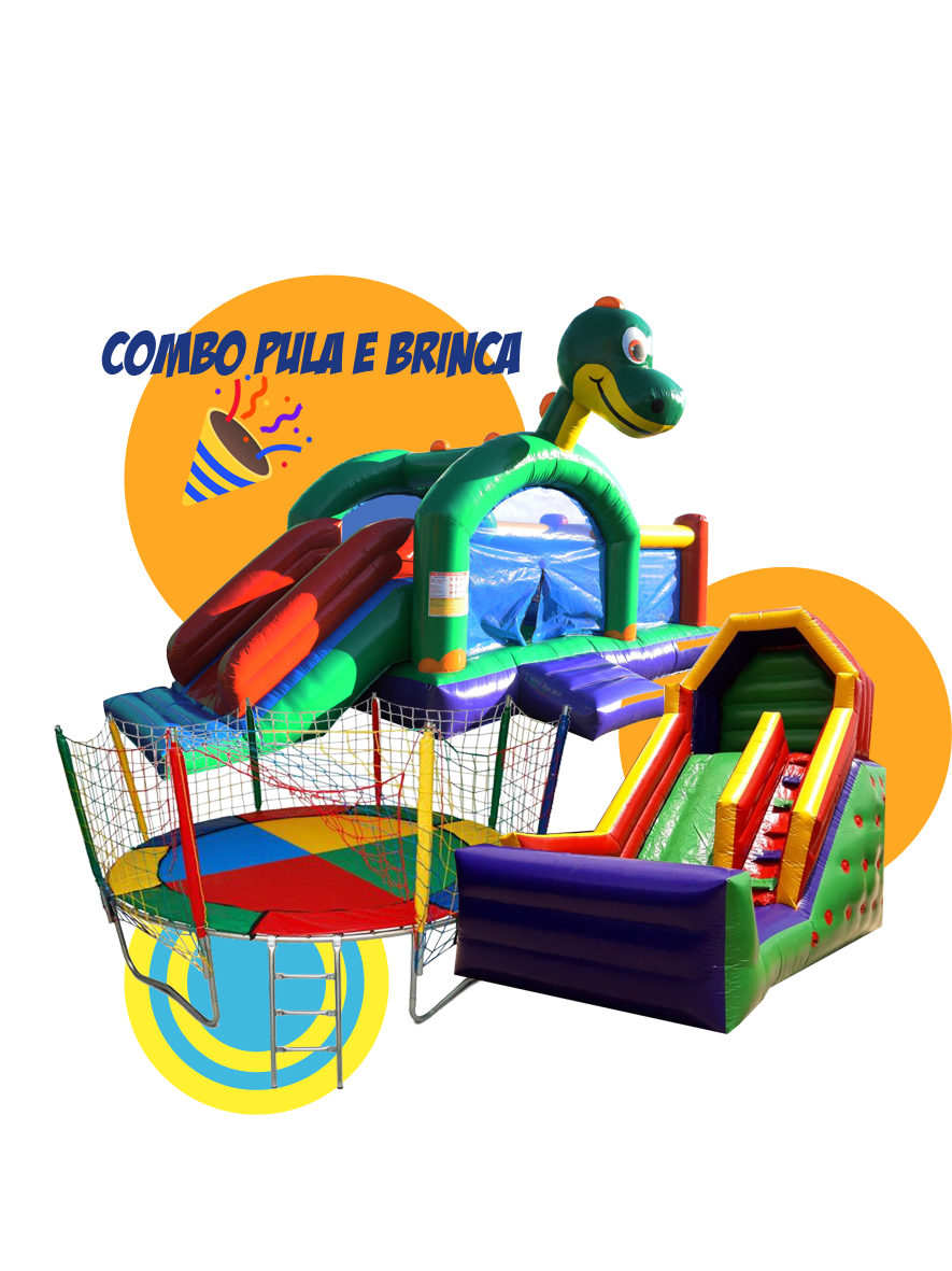 Um combo cheio de alegria e movimento para garantir a diversão da garotada! O Combo Pula e Brinca traz os brinquedos mais amados das festas infantis: